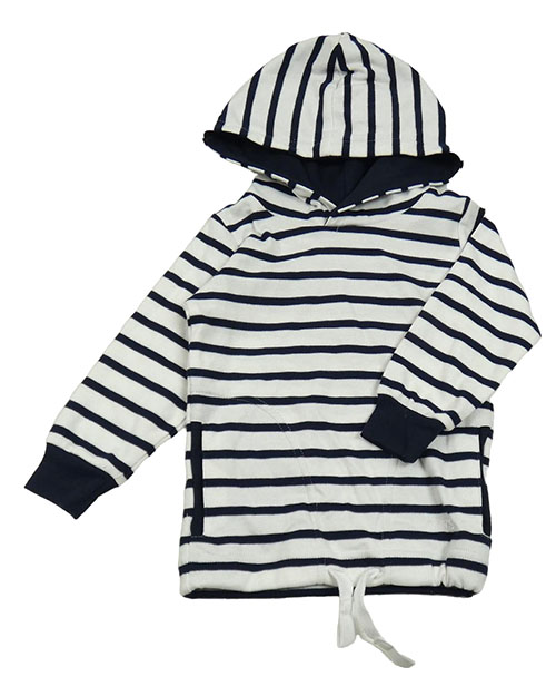 Bielo-tmavomodrá pruhovaná dlhá mikina s kapucňou
