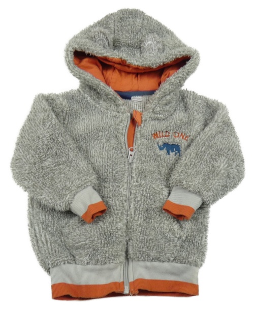 Sivá melírovaná chlpatá prepínaci mikina s nosorožcem a kapucňou Lupilu