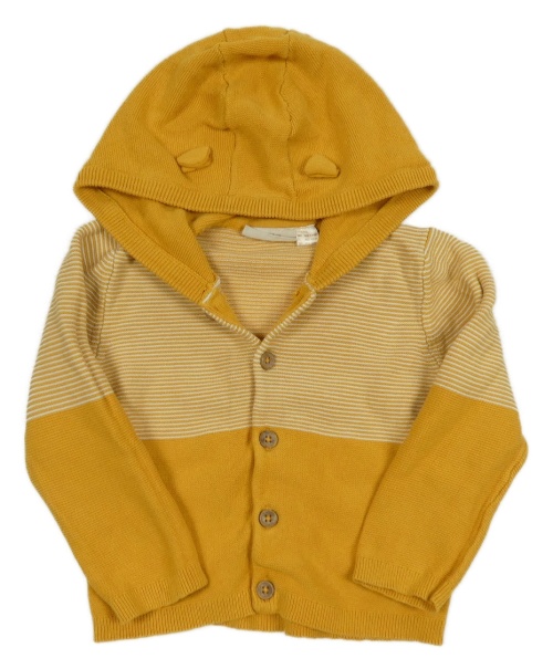 Hořčicovo-biely pruhovaný prepínaci sveter s kapucňou Lupilu