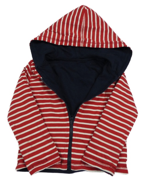 Tmavomodrá prepínaci obojstranná mikina s loďkou a kapucňou