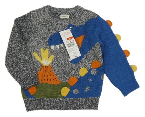 Nové - Sivo-modrý sveter s dinosaurom a sopkou F&F
