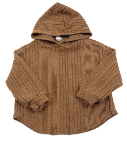 Béžový rebrovaný sveter s kapucňou Shein
