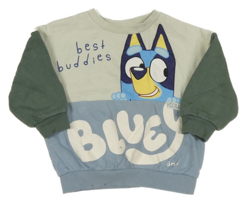 Smetanovo-kaki-svetlomodrá oversize mikina s Bluey