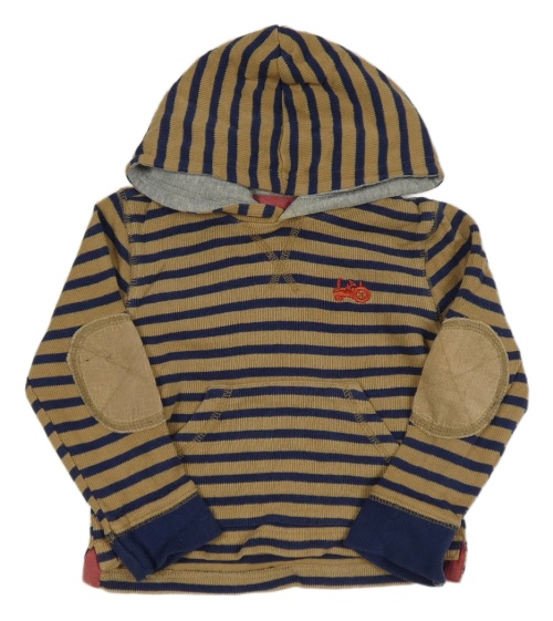 Béžovo-tmavomodrá mikina s klokankou a traktrorem