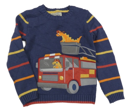 Nové - tmavomodro-pruhovaný sveter s hasiči a dinosaurami MiNiSTRY of RaSCaLS
