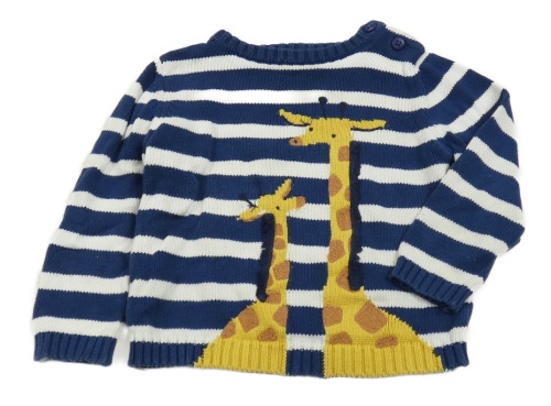 Tmaovmodro-biely pruhovaný sveter s žirafami John Lewis