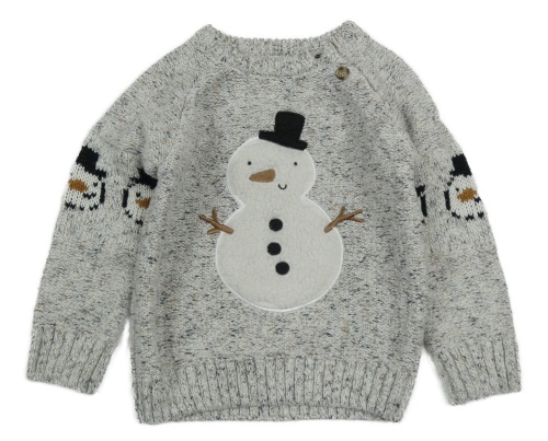 Bielo-sivo-hnedý melírovaný sveter so sněhulákem Next