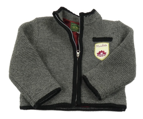 Tmavosivý vlnený podšitý prepínaci sveter s nášivkou