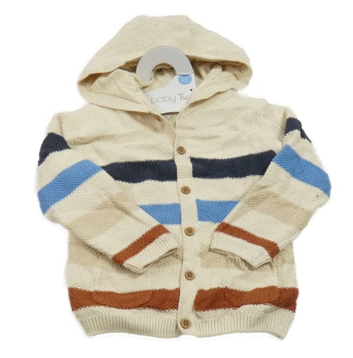 Nové - Béžový prepínaci podšitý sveter s pruhmi a kapucňou Tu