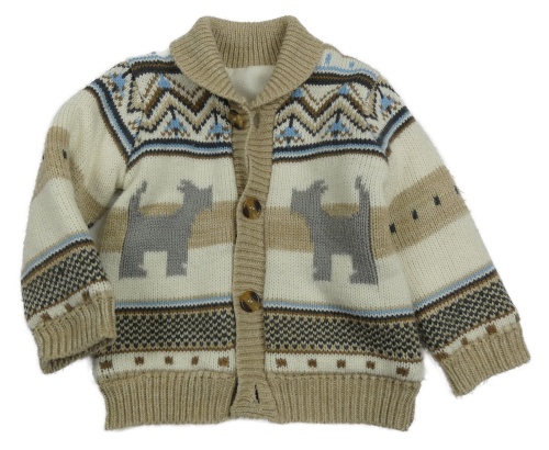 Bielo-béžovo-modrý podšitý prepínaci sveter so vzorom a pejsky Nutmeg
