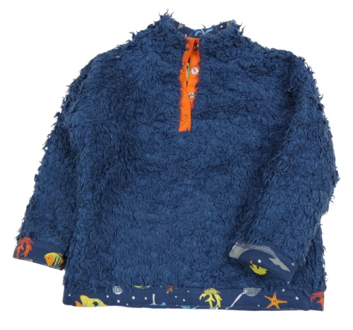 Tmavomodrá chlpatá obojstranná mikina so stojačikom