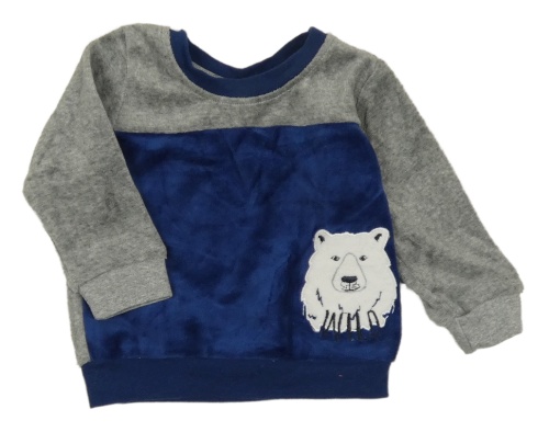 Sivo-tmavomodrá zamatová mikina s medvedíkom Lupilu