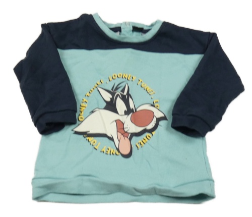 Světlemodro-tmavomodrá mikina s nápismi a mačičkou