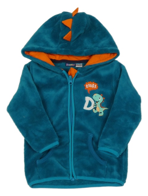 Tmavozelená chlpatá prepínaci mikina s dinosaurom a kapucňou Lupilu