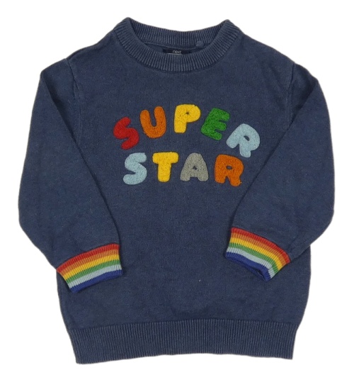 Tmavomodrý sveter s nápisom a prúžkami Next