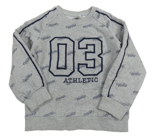Sivá mikina s nápismi a číslom