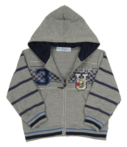 Sivo-pruhovaná prepínaci mikina s výšivkou a číslom