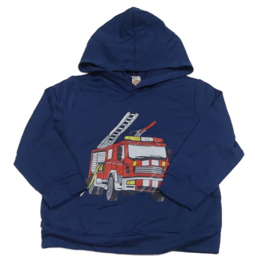 Tmavomodrá ľahká mikina s hasičským autom a kapucňou