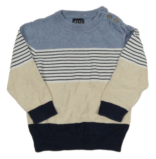 Modro-bielo-světlebéžovo-tmavomodrý melírovaný sveter s pruhmi Next