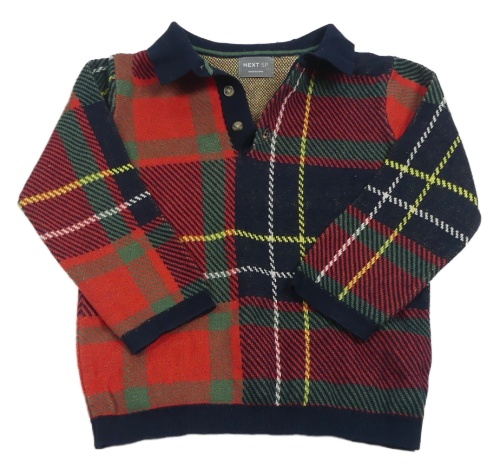 Tmavomodro-červeno-zelený kockovaný sveter s golierikom Next