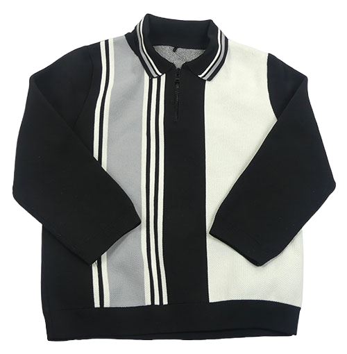 Čierno-sivo-biely sveter s pruhmi a golierikom George
