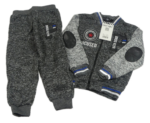 Nové - 2set - Antracitovo-sivá melírovaná pletená prepínaci mikina s nášivkami + tepláky