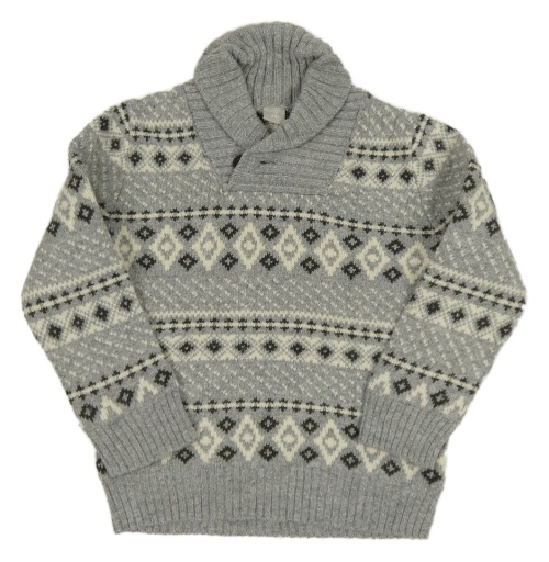 Sivo-biely vzorovaný vlnený sveter s golierikom Tu