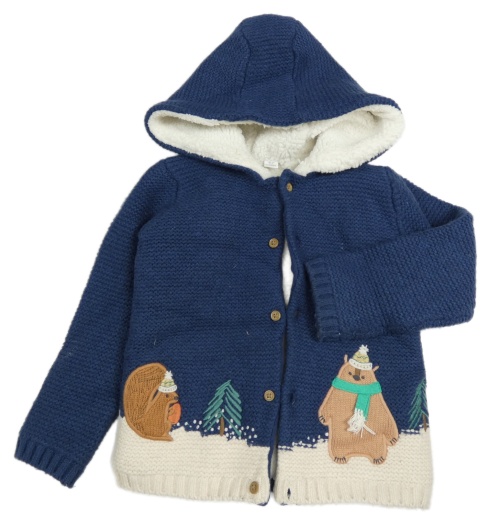 Tmavomodrý prepínaci zateplený sveter so zvieratkami a kapucňou M&S
