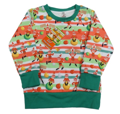 Nové - Bielo-zeleno-červená pruhovaná mikina s Elfy