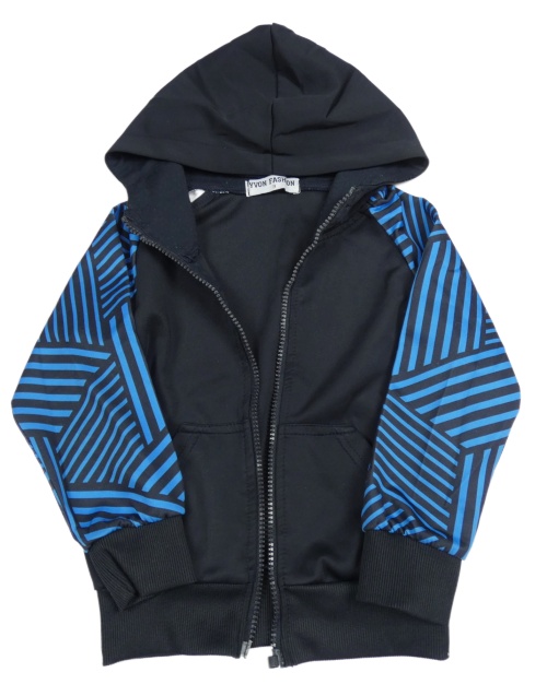 Tmavomodrá prepínaci športová mikina s pruhovaným rukávy a kapucňou