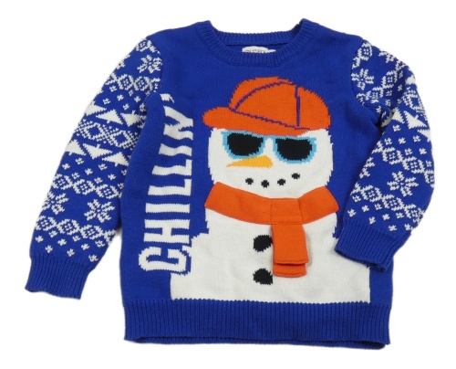 Tmavomodro-biely vzorovaný sveter so sněhulákem