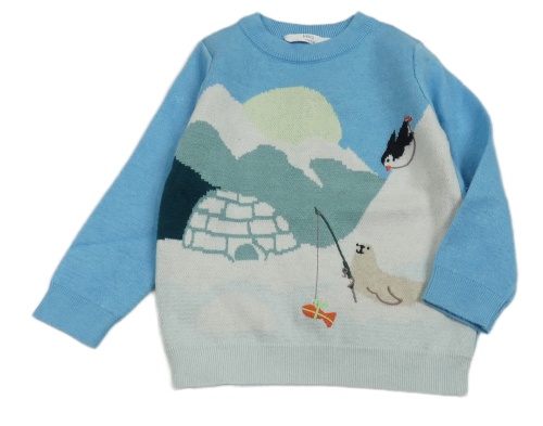 Světlemodro-biely sveter s tučňákem a iglú M&S