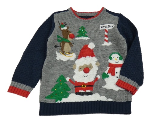 Sivo-tmavomodrý sveter so sobom a sněhulákem Nutmeg