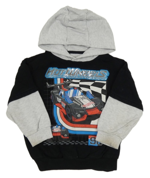 Čierno-svetlosivá mikina s autom a kapucí - Hot Wheels