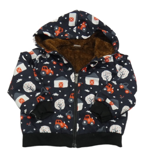 Čierna zateplená prepínaci mikina s traktormi a kapucňou