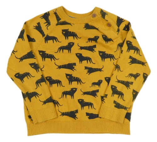 Tmavožltý sveter s kočkovitými šelmami Mothercare