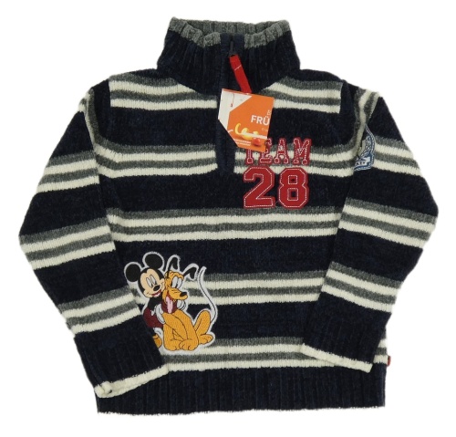 -Nové Tmavomodro-bílo-khaki pruhovaný žinylkový sveter s Mickey Mousem Disney