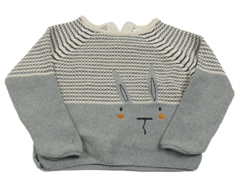 Sivo-smotanový pruhovaný sveter so zajačikom Next