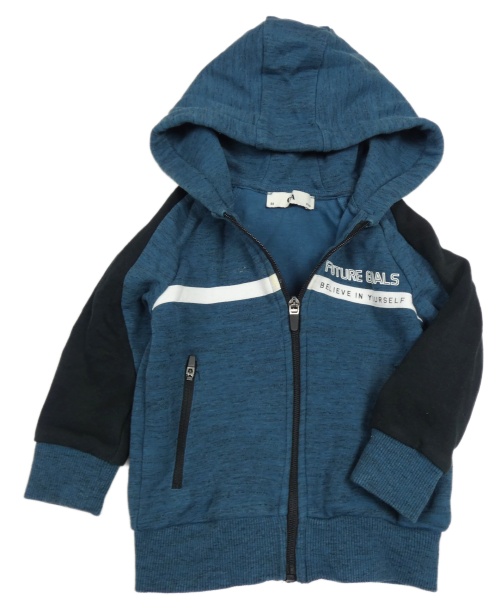 Petrolejovo-čierno-biela prepínaci mikina s nápisom a kapucňou C&A