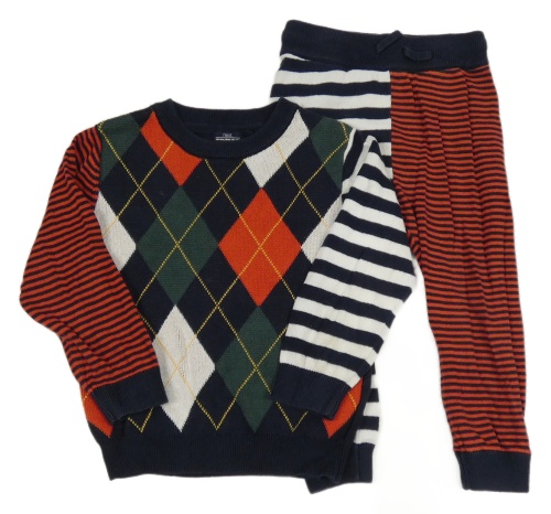 Farebný károvovo-pruhovaný svetr + tepláky Next