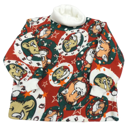 Červeno-zeleno-biela vzorovaná mikina so zvířaty a rolákom