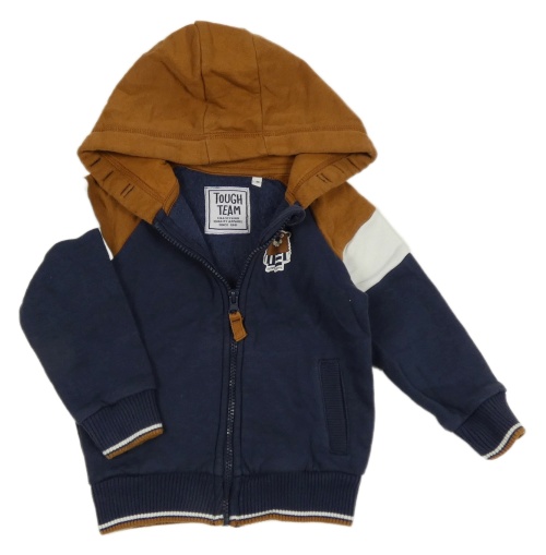 Tmavomodro-hnedo-biela prepínaci mikina s bobrem a kapucňou C&A