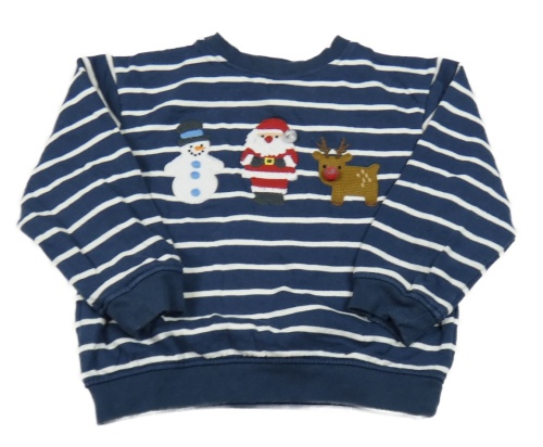 Tmavomodro-biela pruhovaná oversize vianočná mikina so Santou a sobom a sněhuláčkem Next