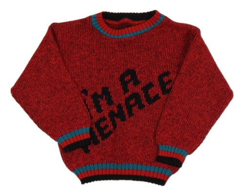 Červeno-čierny melírovaný sveter s nápisom Mothercare