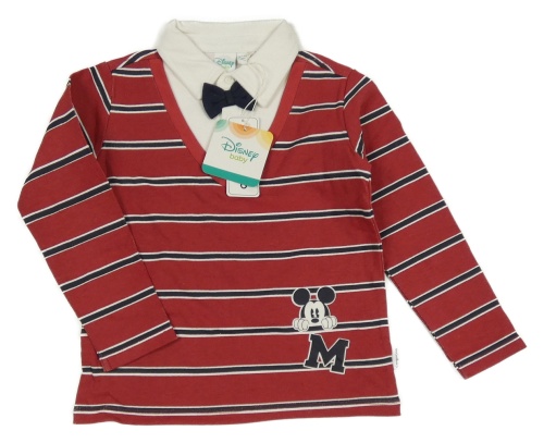 Nové - Červená pruhovaná ľahká mikina s Mickey Mousem a košilí Disney