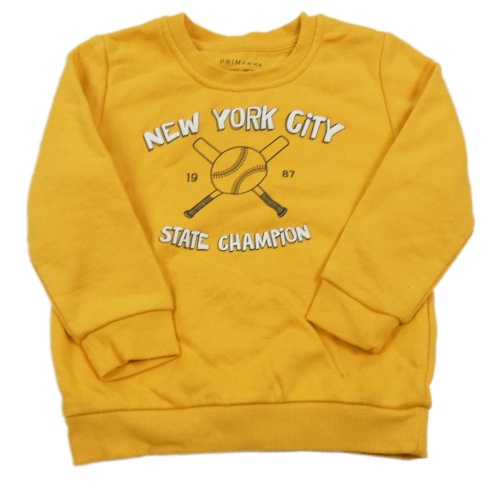 Žltá mikina s baseballovými pálkami a nápisom Primark