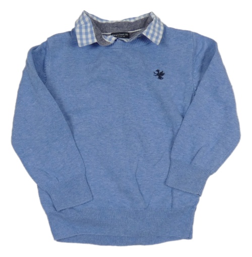 Modrý melírovaný sveter s výšivkou a všitou košilí Next