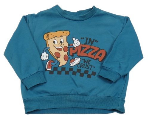 Petrolejová oversize mikina s pizzou a nápismi PL: Kids