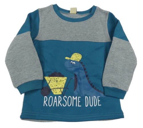 Petrolejovo-sivá melírovaná tepláková mikina s dinosaurom X-MAIL