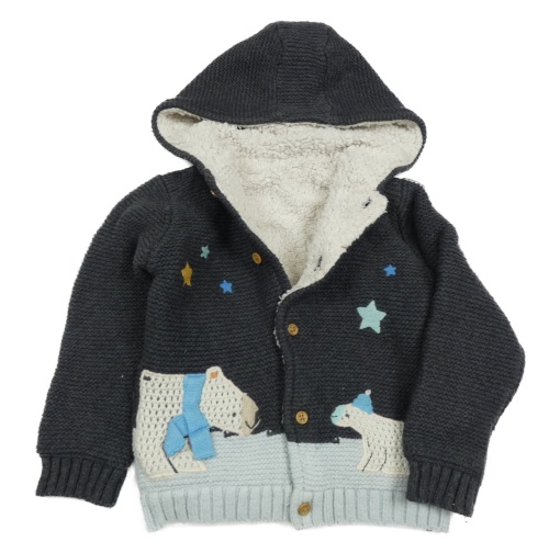 Tmavosivý prepínaci zateplený sveter s medvěďom a kapucňou M&S